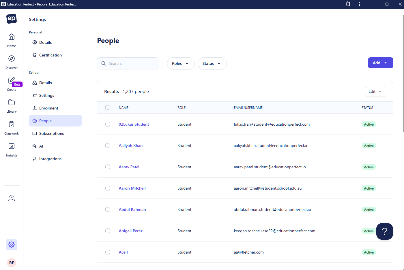 School Administrators can view the relevant information relating to their schools subscriptions with Education Perfect. In this space you’ll be able to view the number of seats purchased, your schools enrolment numbers and will provide indication as to whether your school is over-quota or not.