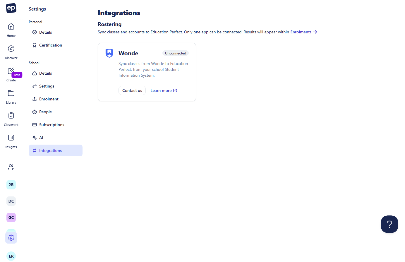 School Administrators can manage third-party integrations from the Integrations tab in School Settings.