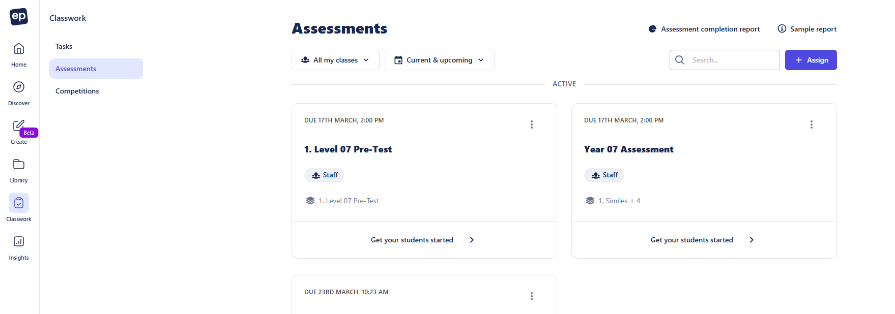 ⚠️ Device requirement: Assessments can only be completed on a computer or tablet (including via the EP PWA). They are not supported on mobile phones. Monitoring features may be limited on tablet devices.