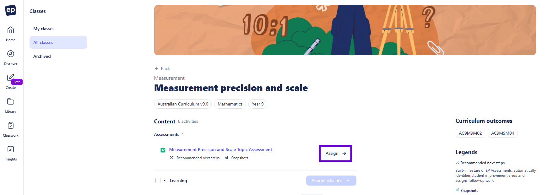 - Navigate to your Classes page and open the class you want to assign work to.