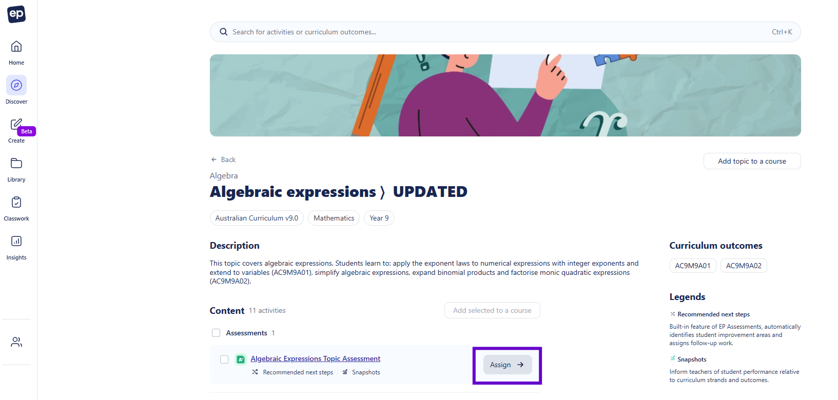 - Locate the topic or lesson you want to assign.