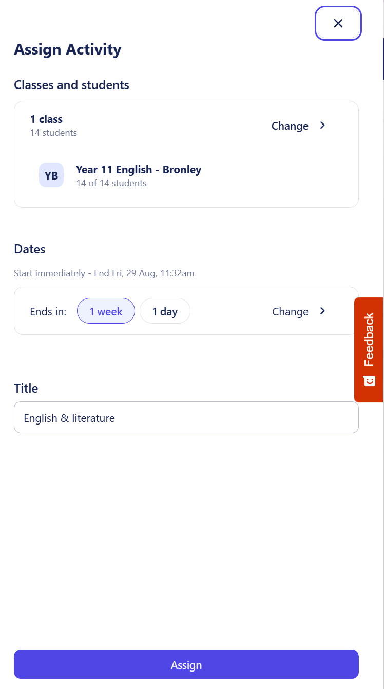 Note: As soon as an activity is assigned, it is automatically shared and becomes visible to other teachers at your school in the EP Create workspace. This makes it easier for colleagues to reuse and collaborate on content.